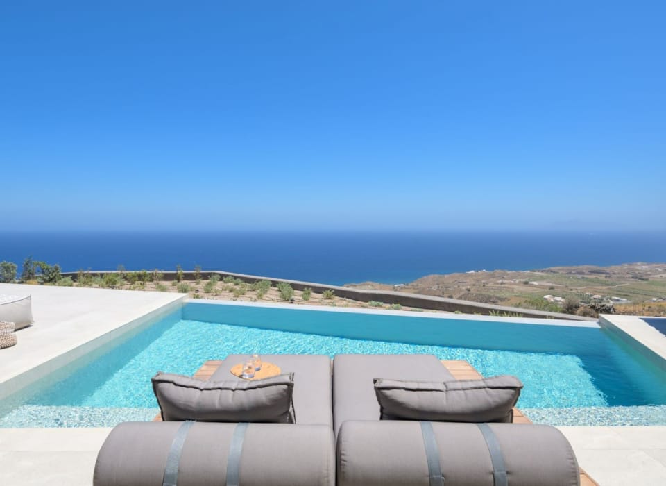 Thoughtfully fitted with all that a modern traveler may desire your private terrace welcomes you to dive in your private heated pool, relax on your sun-loungers while reading a book or dine al fresco at the cozy dining area while gazing at the gleaming blue sea and sky.