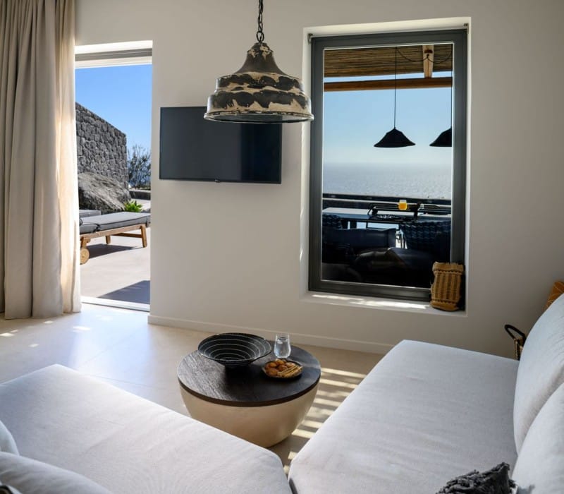 Thoughtfully fitted with all that a modern traveler may desire your private terrace welcomes you to dive in your private heated pool, relax on your sun-loungers while reading a book or dine al fresco at the cozy dining area while gazing at the gleaming blue sea and sky.